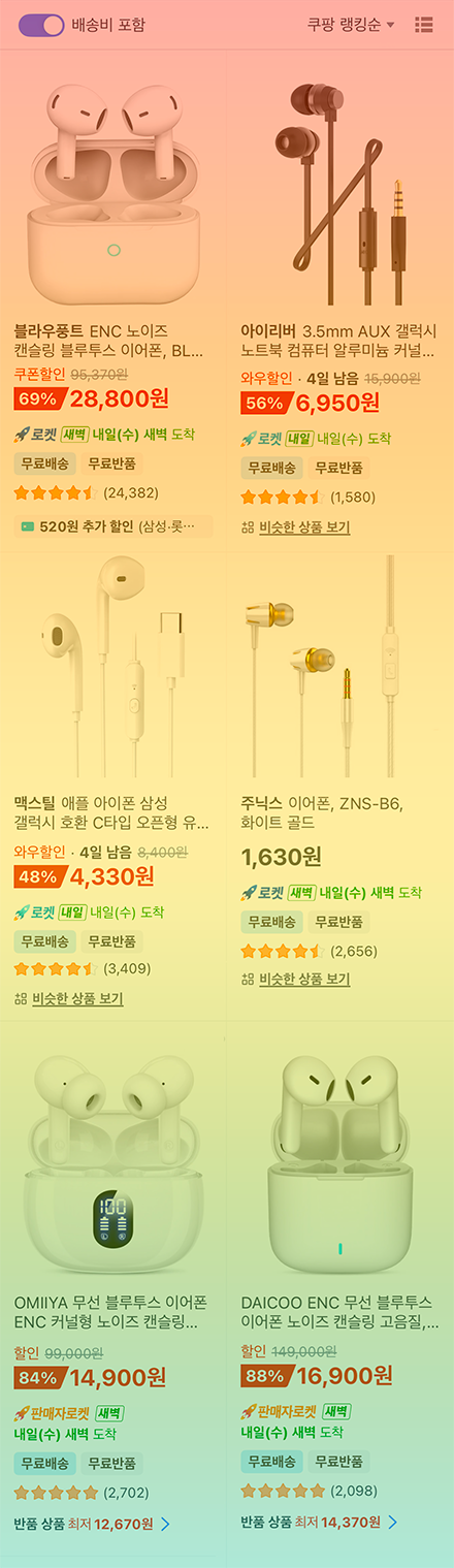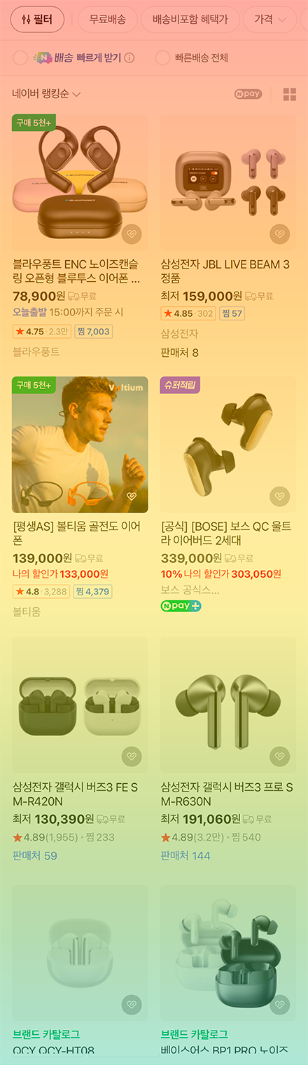 광고 표시가 없는 상단 상품은 "많은 사람이 찾고,